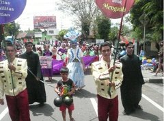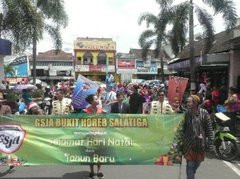Het is voor het eerst dat de kerken in Salatiga e.o. toestemming hebben gekregen van de regering om een parade door de stad te organiseren. De gemeenteleden, jeugd, tieners en ook de kinderen zijn zeer enthousiast en doen mee aan de parade. Op de foto ziet u ziet u hoe ze gekleed zijn en folders met Bijbelse teksten lopen. De wegen in het centrum worden door de politie gesloten voor de parade. Het is geweldig daar de christenen hun geloof in Jezus kunnen demonstreren via de parade. Op de foto ziet u dat de burgemeester en regeringsambtenaren voor het gemeentehuis met volle aandacht de parade volgen.